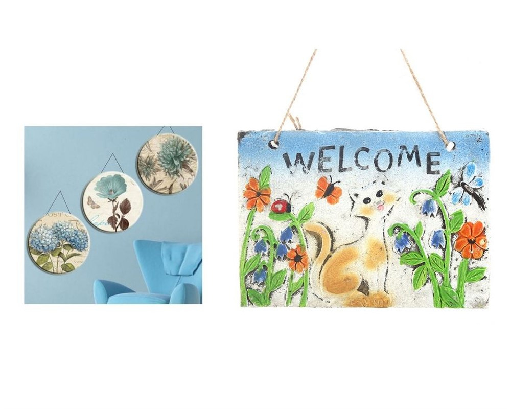 Balkon ve bahçenize asabileceğiniz Kedi ve çiçek desenli dekoratif süstür.Dikdörtgen şekillidir.Üzerinde Hoşgeldin yazılı mesaj vermektedir.Mavi ve kahverengi tondaki ürün,seramik malzemelidir.Boyu 21,8cm,eni 16,4cm,kalınlığı 1,2cm,dir. Balkon veya bahçenizde dekoratif bir görüntü oluşturacak çiçek ve hayvan figürlü tasarıma sahip asılabilir süstür.Görseldeki aksesuarlar ürüne dahil değildir.