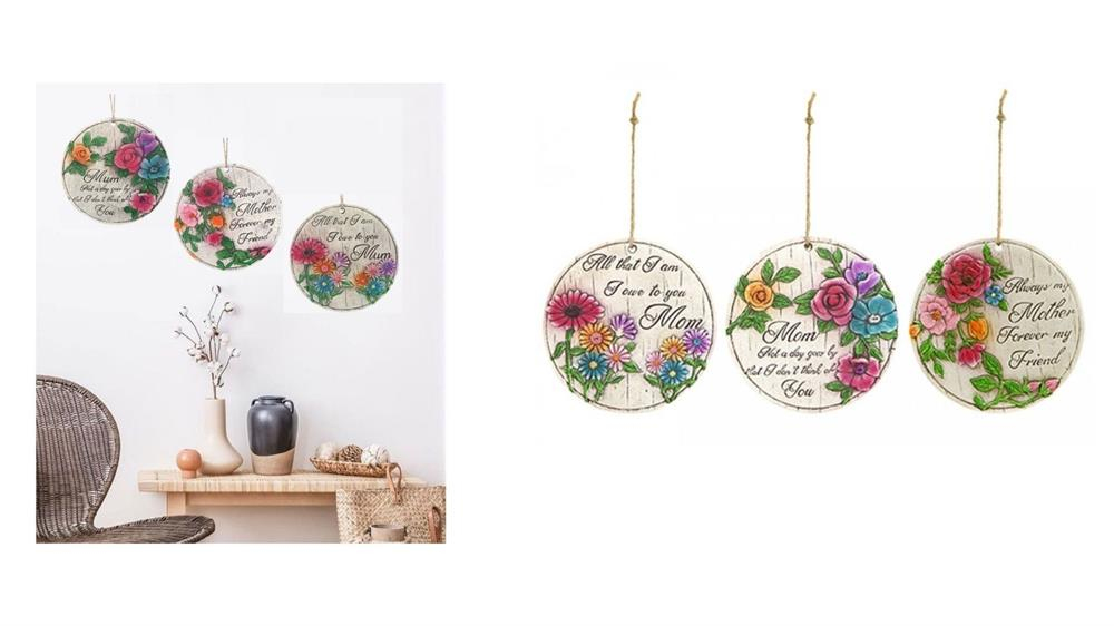 Balkon,Bahçe Ve Oda Süsü 3 Adet Papatyalı,Anne Temalı Yuvarlak 15x15x1,1cm